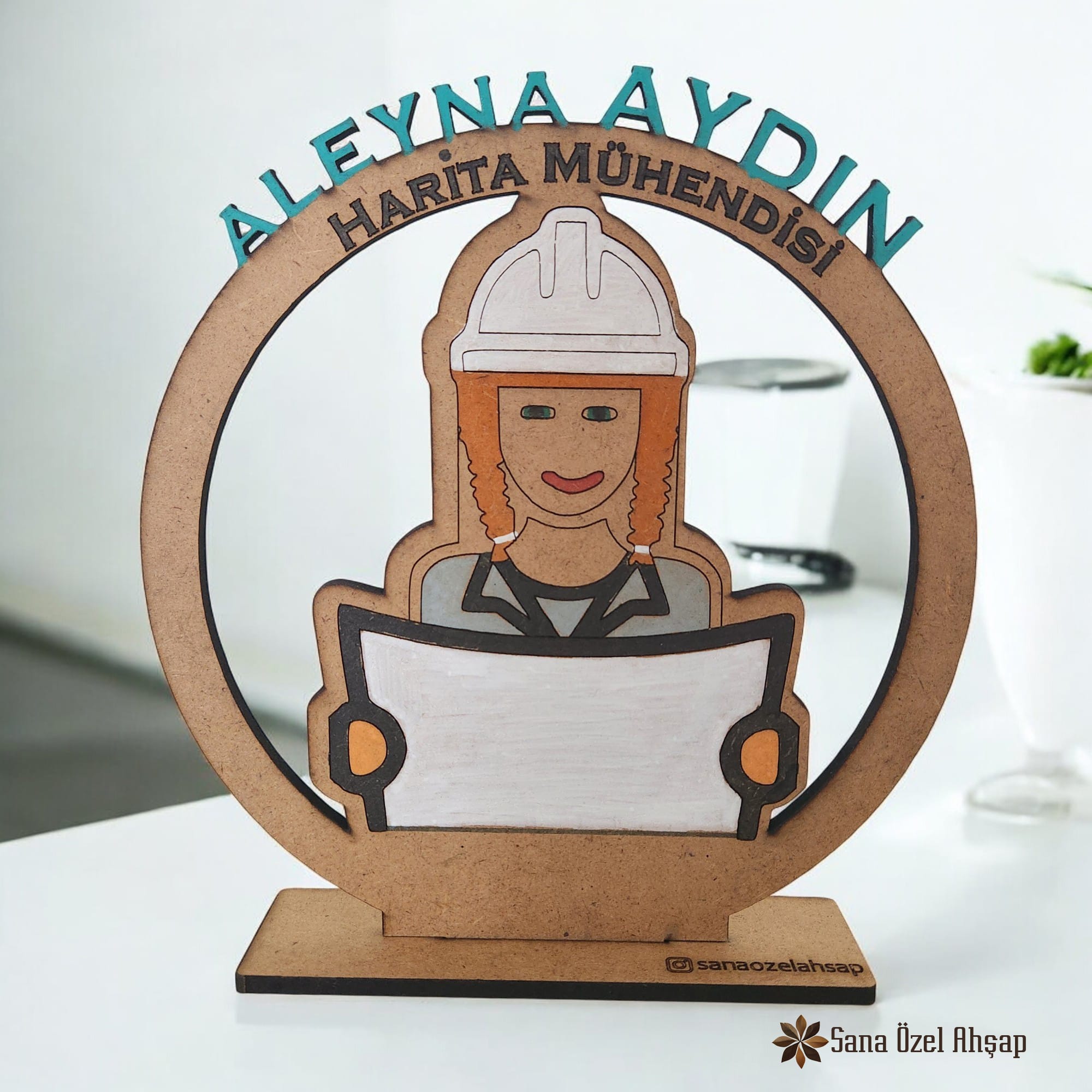 Kadın Mühendisler İçin Kişiye Özel Biblo | 18x18cm | 4mm MDF | Mesleğe ve Baret Rengine Özel Tasarım